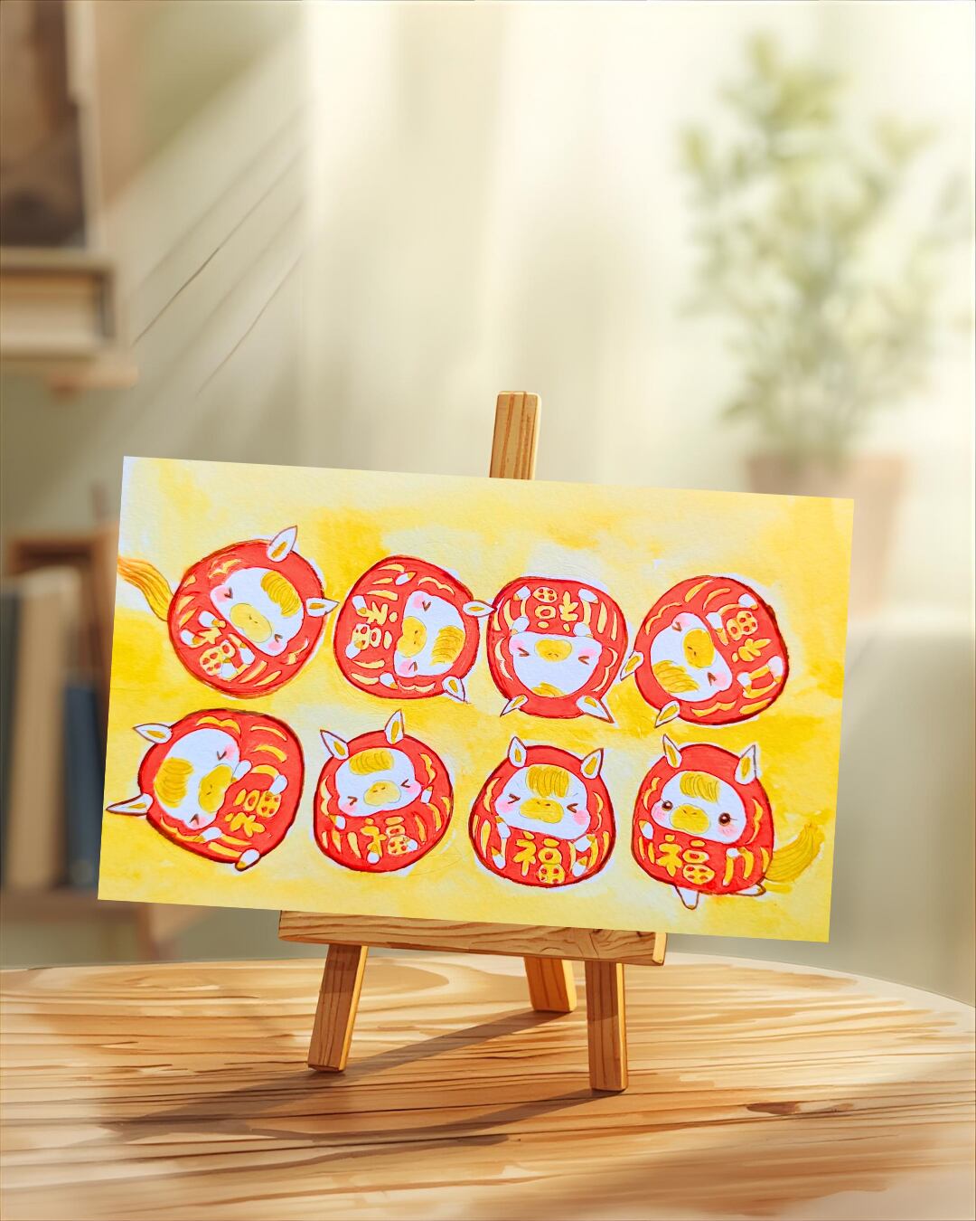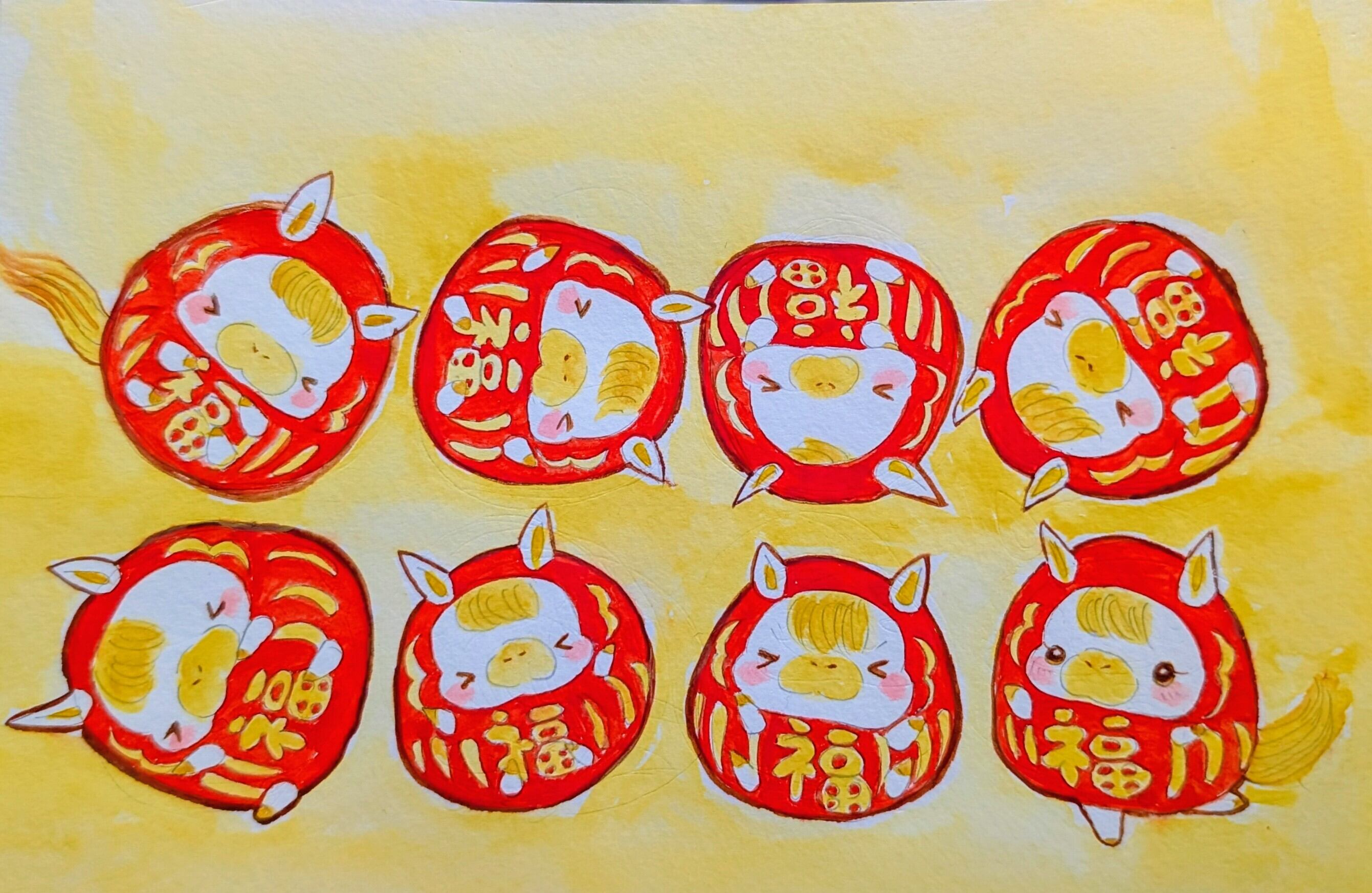 七転び八起きする午だるまちゃんを描いた作品です